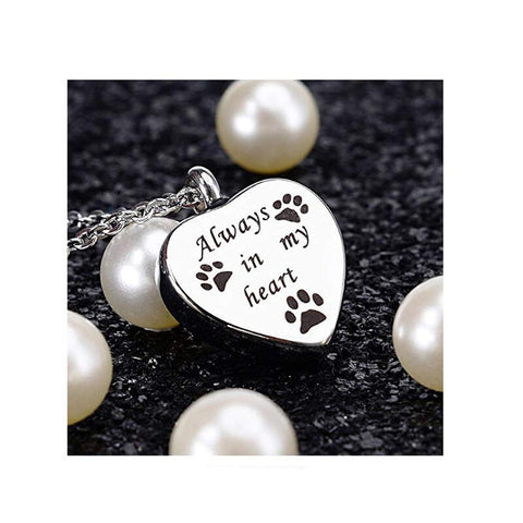 "Always In My Heart" Pet Paw Cremation Urn Necklace Jewelry